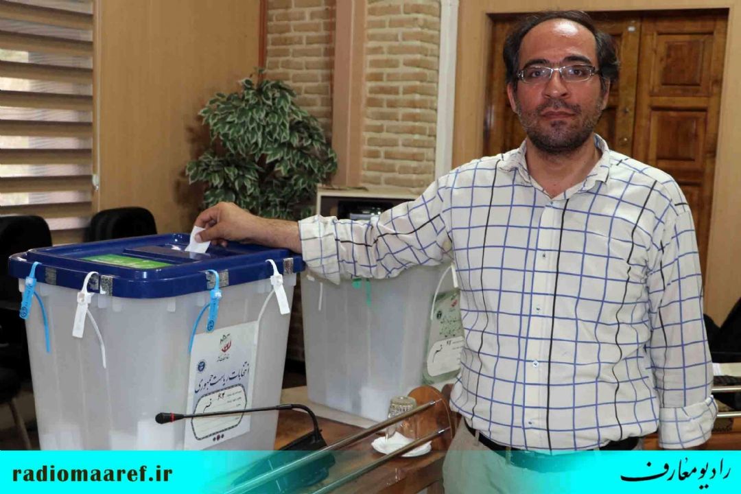گزارش تصویری از رأی دادن مدیر و كاركنان شبكه رادیویی معارف در صندوق سیار شماره 603 قم و مشاركت در انتخابات 1400